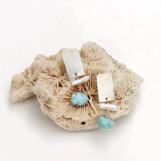 Larimar Blue Stack Earrings - Sterling Silver by Alana Douvros