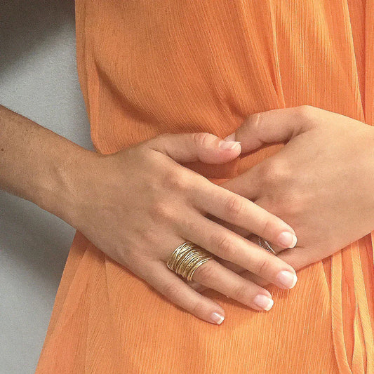 Golden Strands Crossover Ring - GP sterling silver