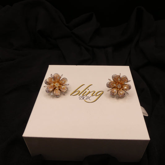 Minoo Double Flower Drop 18k Gold plated Earrings by Eye Candy Los Angeles