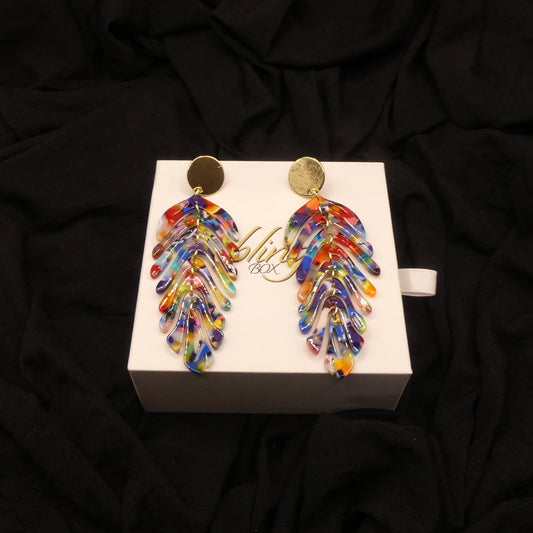 Rainbow resin Drop Leaf Earrings by Eye Candy Los Angeles